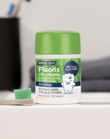 Både fluor og vitamin D er viktig for tennene. Nycodent Fluortablett med vitamin D er en tablett med god smak som kan tygges eller suges, og kan inntas daglig av alle over 3 år. Slik kan dere fokusere på sunn mat og gode vaner, samtidig som dere vet at dere sjekker av på viktige punkter. Barn og ungdom med regulering kan også ha godt av en fluortablett i tillegg til vanlig tannkrem.